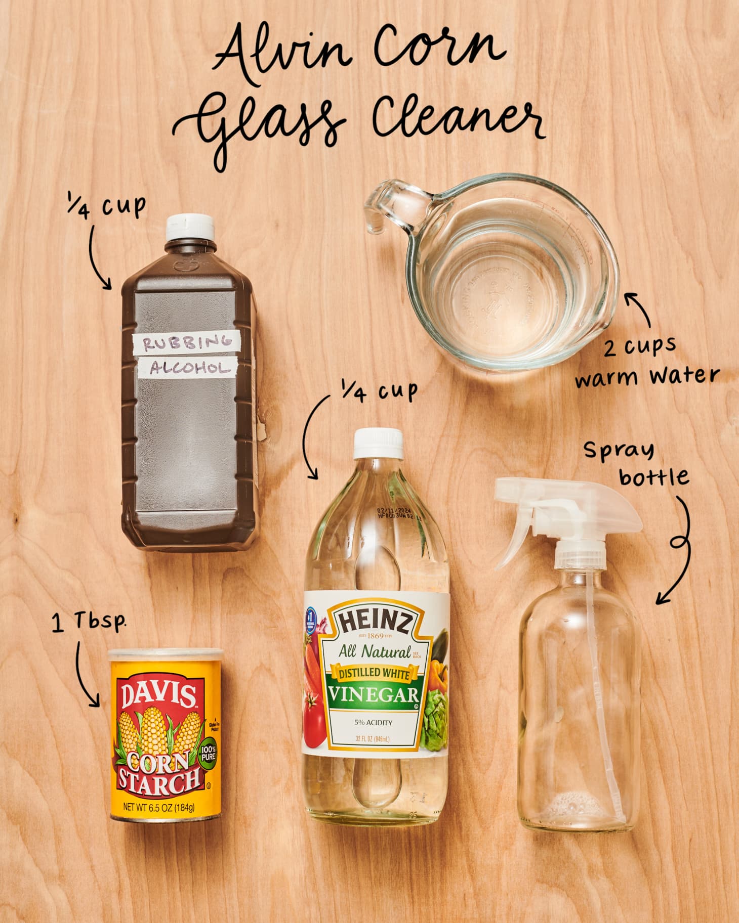 This diy cleaning solution is made with cornstarch, alcohol, and essential oils.